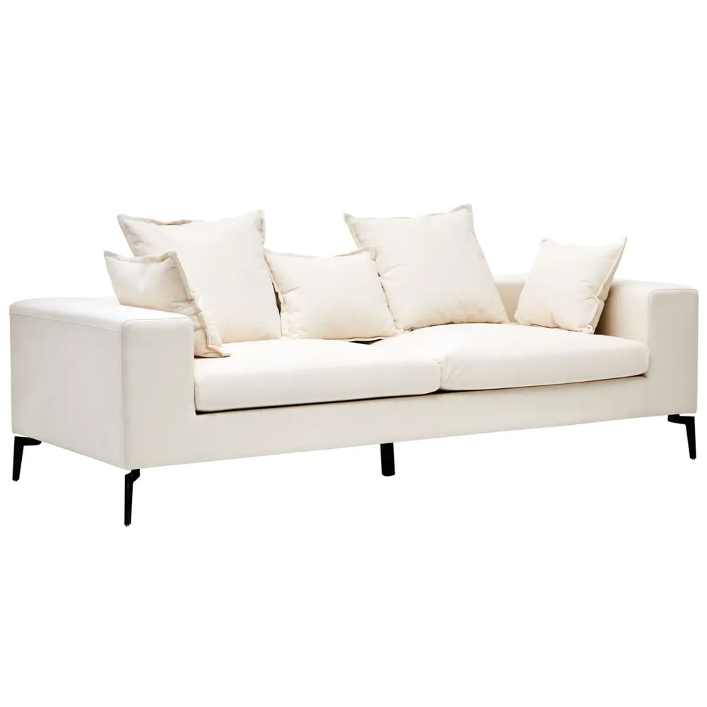 Furniture in Fashion Anton Fabric 3 Seater Sofa In Cream is a timeless blend of modern elegance and ultimate comfort, designed to complement any contemporary living space. Upholstered in high-quality cream fabric, this sofa brings a fresh and airy feel to your home decor. Its sleek silhouette and plush cushions make it a perfect centrepiece for relaxing, entertaining, or simply unwinding after a long day. Expertly crafted with a sturdy wooden frame, the Anton 3 Seater Sofa offers both durability and style. The soft-touch fabric ensures a luxurious seating experience, while the supportive cushioning provides all-day comfort. Its neutral cream tone makes it incredibly versatile, easily pairing with a variety of colour schemes and interior styles, from modern minimalism to classic chic. The Furniture in Fashion Anton Fabric 3 Seater Sofa In Cream is more than just a seating solution its a style statement for your home. Combining elegance, comfort, and durability, its the perfect addition to create a warm and inviting living space. FEATURES : Material : Cotton Linen 20%, Foam 30%, Larch Wood 30%, Plywood 20%, Metal, Fabric Finish : Cream, Black The Anton cream fabric sofa has linear detailing that adds a luxe accent to modern decor settings The spacious three-seat Anton sofa with cushions features a low back, level with armrests Upholstered in cream-coloured fabric and supported by metal legs complements the linear detailing of the sofa Functional and aesthetic Black metal legs Padded seat Thick seat and back cushions for superior comfort and support Neutral cream colour to complement various decor themes Wipe with a soft cloth, do not use abrasive cleaners Requires Assembly Available at an affordable price Images shown are for illustration purpose only DIMENSIONS : Height : 75cm Width : 228cm Depth : 101cm