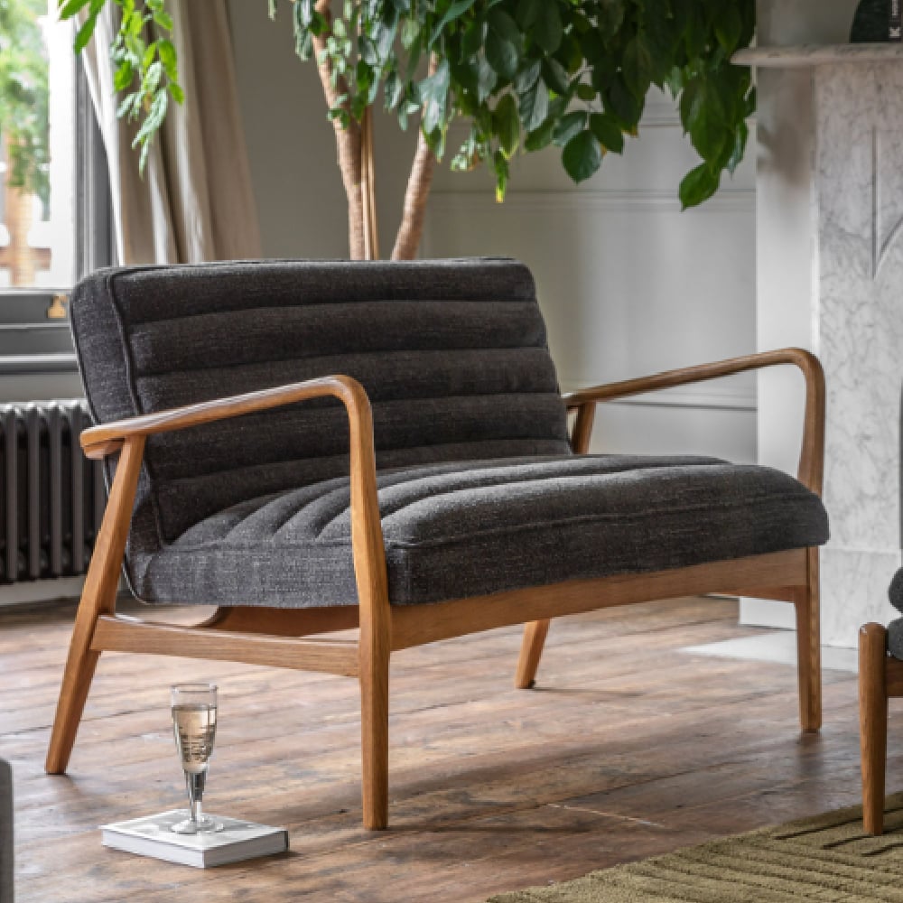 Dotson Fabric 2 Seater Sofa With Wooden Frame In Charcoal