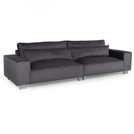 Elevate your living space with the Furniture in Fashion Hazel Fabric 4 Seater Sofa in Steel. This exquisite sofa seamlessly blends modern design with comfort, featuring a chic steel fabric upholstery that exudes contemporary elegance. The chrome metal legs add a touch of sleek sophistication and provide sturdy support. The spacious 4-seater size offers ample seating for family and friends, perfect for gatherings and relaxation. Experience the perfect fusion of aesthetics and comfort with the Hazel Fabric 4 Seater Sofa – a true testament to the harmony of form and function. Enhance your interior with this exceptional piece from Furniture in Fashion, offering both visual appeal and relaxation. FEATURES : Material : Fabric Finish : Steel Elevate your living room with the Furniture in Fashion Hazel Fabric 4 Seater Sofa in Steel Exquisite design featuring a chic steel-coloured fabric upholstery and sleek chrome metal legs Sturdy construction for durability and stability, providing ample and comfortable seating for four Ideal for larger gatherings, movie nights, or creating a cosy family space Experience the perfect blend of aesthetics and comfort, enhancing your interior with this exceptional piece from Furniture in Fashion Available at an affordable price Images shown are for illustration purpose only DIMENSIONS : Height : 900mm Width : 3840mm Depth : 1060mm