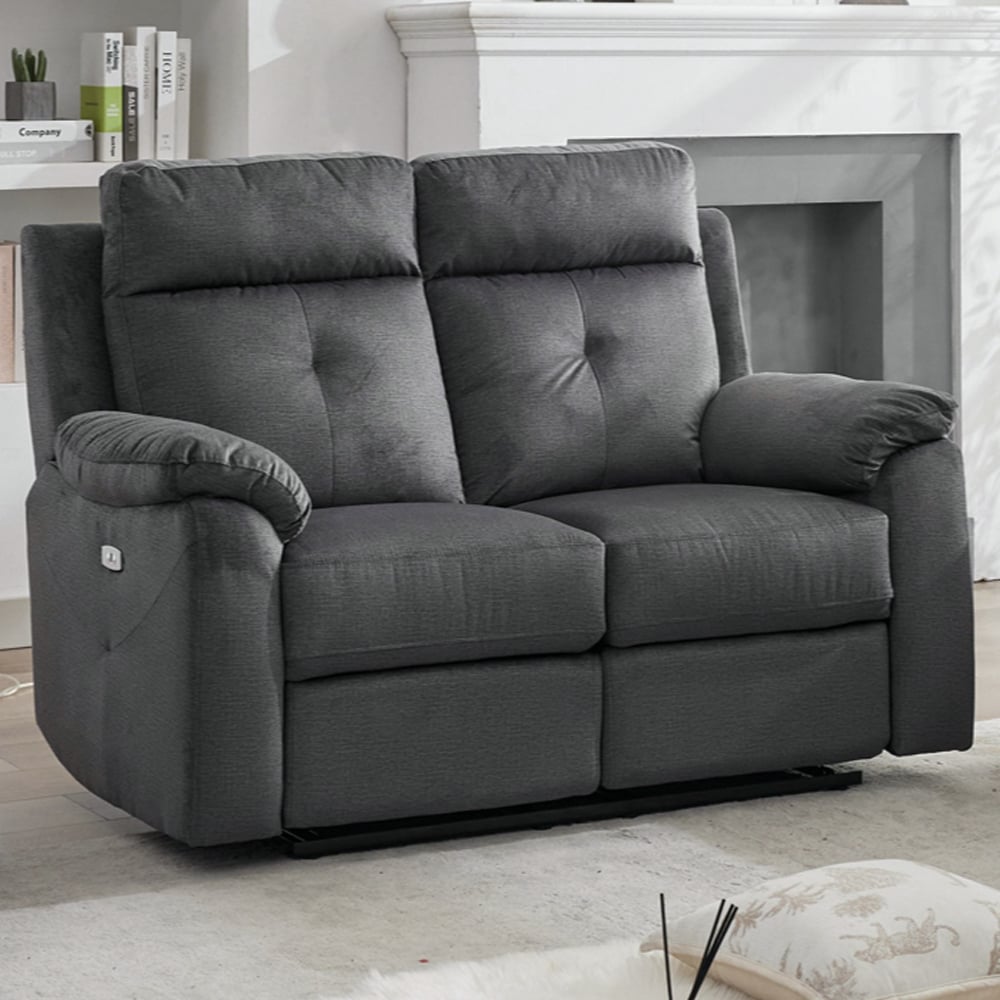 Pasco Fabric Electric Recliner 2 Seater Sofa In Anthracite