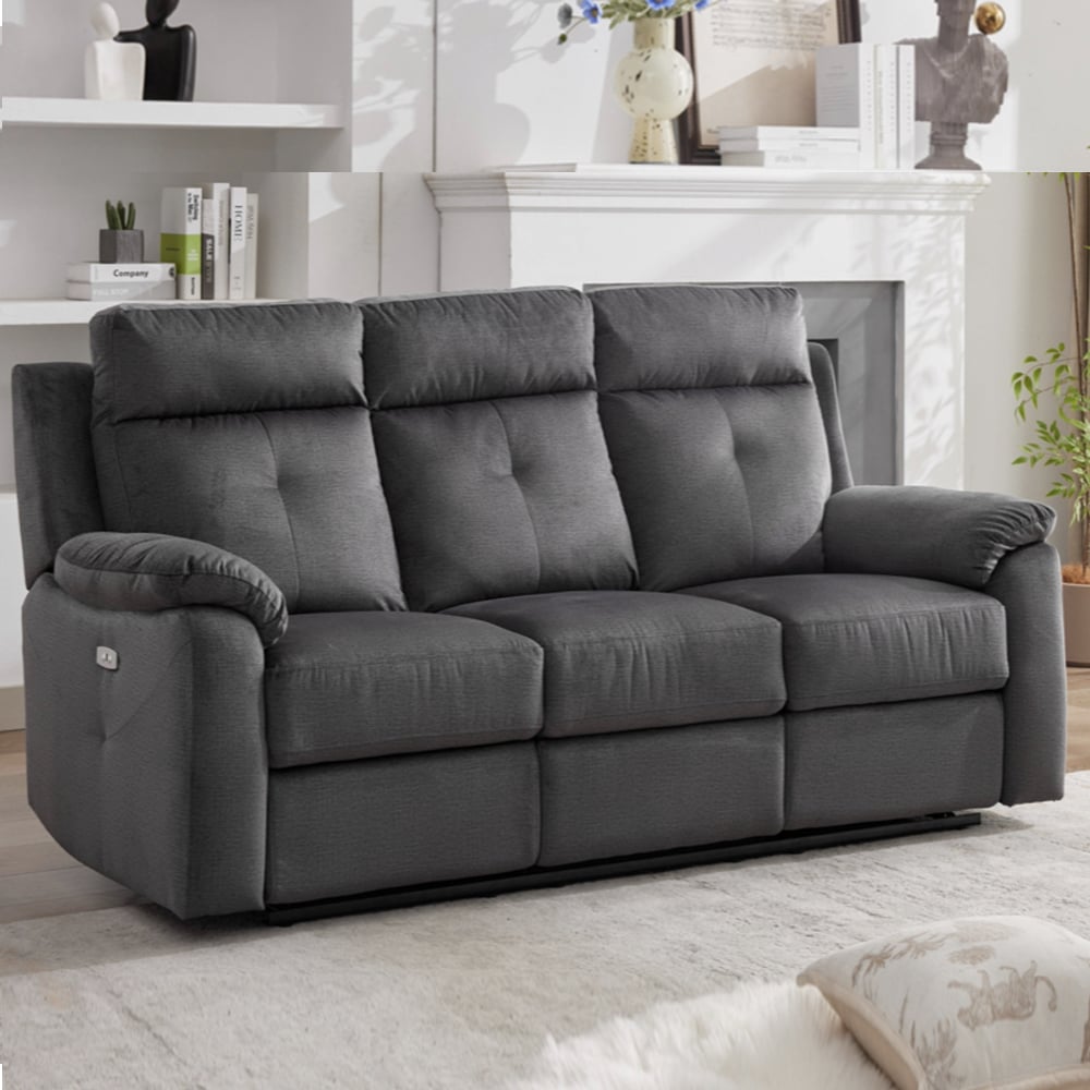 Transform your living space into a haven of comfort with the Furniture in Fashion Pasco Fabric Electric Recliner 3 Seater Sofa in Anthracite. Designed with luxury and functionality in mind, this modern three-seater sofa blends plush fabric upholstery with smooth electric reclining features to offer the ultimate in relaxation. Whether you’re enjoying a quiet evening or hosting guests, the Pasco sofa delivers both style and support. The rich anthracite grey fabric gives this recliner a sleek and contemporary appeal that fits effortlessly into any decor. With its dual electric recline mechanism, each seat adjusts at the touch of a button, ensuring personalized comfort every time. Ideal for modern homes, apartments, or family rooms, this sofa offers the perfect balance of sophistication and practicality. The Furniture in Fashion Pasco Fabric Electric Recliner 3 Seater Sofa in Anthracite combines modern design with exceptional comfort, making it a must-have for any stylish living room. With its dual electric reclining feature and soft upholstery, this sofa is the perfect choice for those who value both relaxation and refined aesthetics. FEATURES : Material : Fabric Finish : Anthracite Create a serene space with our Pasco fabric electric recliner suite Designed for comfort and durability The plush Anthracite fabric upholstery adds a warm touch to your living room, while the electric reclining function lets you relax at your desired angle at the touch of a button Enjoy the perfect mix of style, comfort, and craftsmanship Soft-touch material with a contemporary finish that adds elegance to any room Effortlessly recline each seat with individual controls for personalized relaxation Designed to comfortably accommodate three people while maintaining a compact footprint Provides excellent lumbar and neck support, perfect for long hours of lounging Deeply padded seats and armrests ensure maximum comfort and coziness Built with durable materials for long-l