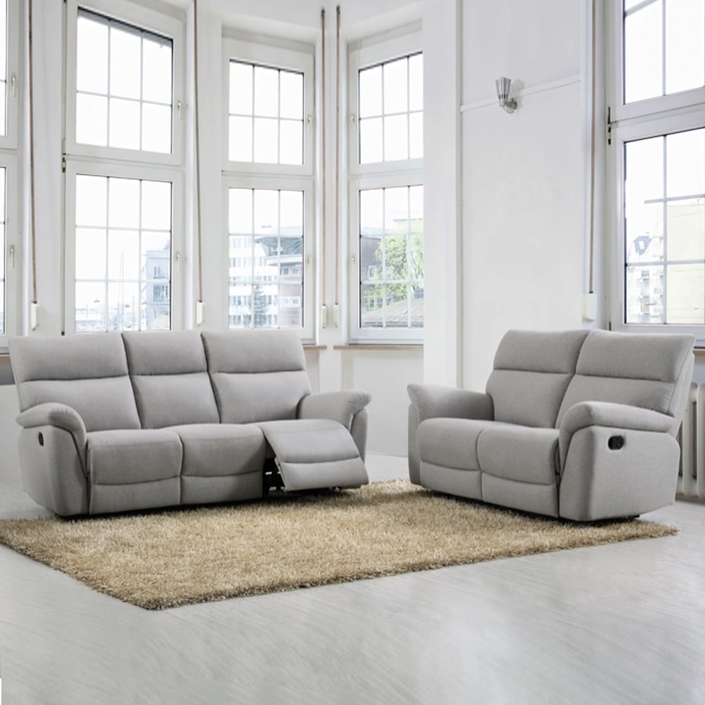 Bring home comfort, functionality, and modern style with the Payson Fabric Recliner 3+2 Seater Sofa Set in Ash from Furniture in Fashion. This beautifully coordinated set includes a spacious 3-seater and a cozy 2-seater recliner sofa, offering the perfect balance of space and luxury for family living rooms or entertainment areas. Designed for those who love to relax in style, the Payson set adds elegance and ease to your everyday lounging. Upholstered in premium Ash fabric, this recliner set from Furniture in Fashion features soft, cushioned seating with high backrests and smooth manual reclining mechanisms for both sofas. Its sleek contemporary design and versatile colour make it an ideal fit for any modern or transitional interior. The Payson Fabric Recliner 3+2 Seater Sofa Set in Ash by Furniture in Fashion is the ideal solution for anyone seeking comfort, style, and practicality in one stunning package. With its premium build, sleek design, and superior comfort, this set creates the perfect lounging environment for any modern home. Relax in luxuryevery day. FEATURES : Material : Fabric Finish : Ash Set Include : 1 x 3 Seater Sofa, 1 x 2 Seater Sofa Upgrade your living space and elevate your relaxation with our Peru Electric Reclining Suite Discover the perfect fusion of style, comfort, and innovation today Indulge in supreme comfort with its sumptuous leather and leather match upholstery The Peru suite offers a high electric adjustable headrest and allows the user to control the recline function at the touch of a button A built in USB charger is included as standard Soft-touch Ash fabric upholstery for a sleek, modern look and cozy feel Choose between the neutral elegance of Anthracite or the deep sophistication of Ash to perfectly complement your space High-quality Ash fabric upholstery offers a modern, sophisticated finish Manual reclining function on both sofas for effortless comfort Plush padded seating and supportive backrests for
