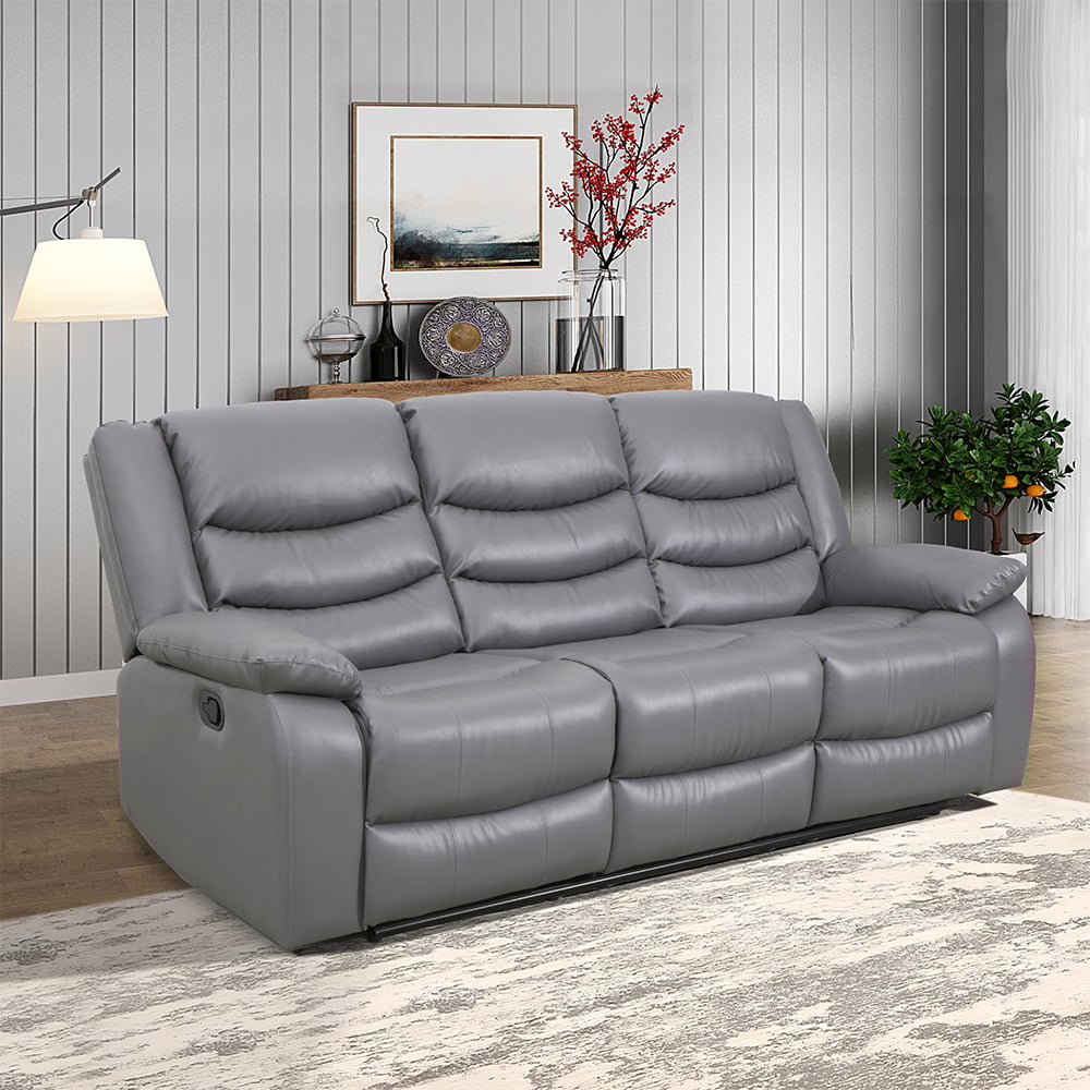 Sorreno Bonded Leather Recliner 3 Seater Sofa In Dark Grey