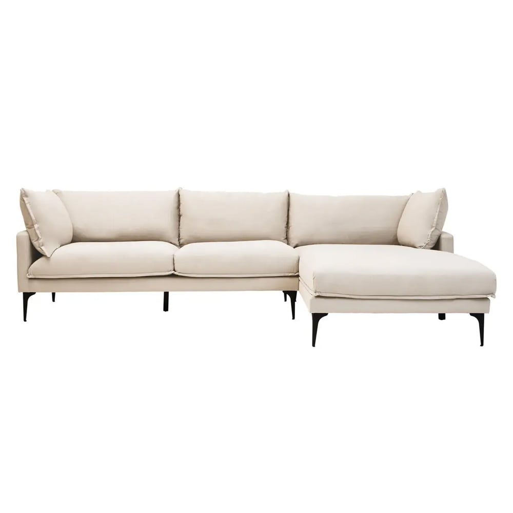 Transform your living room with the Furniture in Fashion Toccoa Fabric Right Handed 3 Seater Sofa In Cream. Designed for comfort and style, this spacious sofa features a sleek right-handed configuration, making it perfect for modern homes. Its soft Cream fabric upholstery adds a touch of elegance while ensuring it blends seamlessly with a wide range of interior styles. Built for everyday relaxation, the Toccoa 3-seater sofa combines durable construction with plush cushioning to create the ultimate lounging experience. Whether youre entertaining guests, enjoying family time, or simply relaxing with a book, this sofa provides ample seating and timeless sophistication. The Furniture in Fashion Toccoa Fabric Right Handed 3 Seater Sofa In Cream is the perfect blend of comfort, durability, and modern elegance. A versatile choice for any home, this sofa is designed to be both a stylish statement and a practical seating solution. FEATURES : Material : Cotton 10%, Foam 35%, Iron 5%, Larchwood 10%, Linen 10%, Plywood 30% Finish : Cream The Toccoa three-seat right hand facing chaise sofa boasts Cream finish upholstery and plump cushioning making it a stylish and comfortable addition to minimalist interior aesthetics Featuring a clean and minimalist design, this three-seater sofa features muted Cream finish upholstery The right hand facing chaise offers a comfortable extension for relaxation, while the plump cushioning ensures a cosy seating experience Supported by sleek matte black metal legs, the Toccoa sofa embodies contemporary style and practicality Cream finish upholstery Right hand facing chaise Plump cushioning Minimalist design Modern seating Wipe with a soft cloth, do not use abrasive cleaners Requires Assembly Available at an affordable price Images shown are for illustration purpose only DIMENSIONS : Height : 80cm Width : 285cm Depth : 171cm