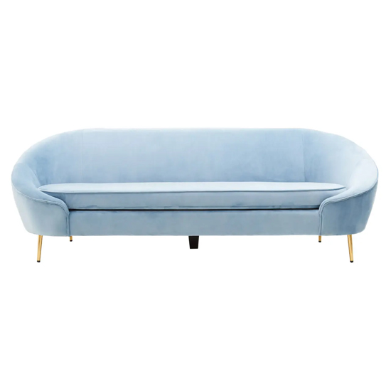 York Velvet 3 Seater Sofa In Aqua Blue With Gold Metal Legs